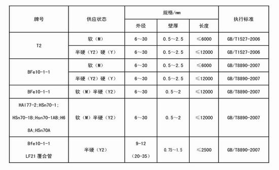 我公司生产的主要产品有:T2、H62、H65、H68、HSn70-1、HSn70-1B、HAL77-2、BFe30-1-1、N4、N6、TAI、TA2。主要用于军工、电站、石油化工、机械船舶。